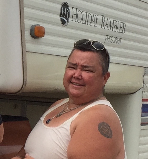 Mia in front of her trailer. She definitely is a Free Spirit!