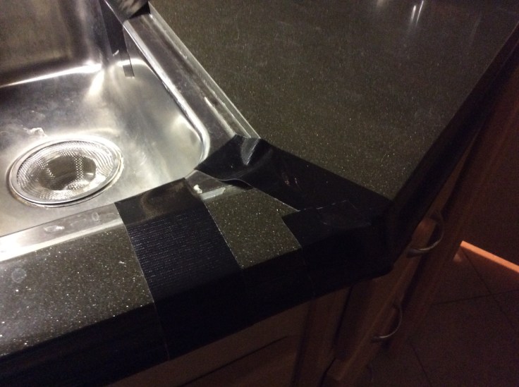 I’ll have to write a kind letter to the Gorilla Tape people. Ben taped the shattered pieces of the counter back together, and we’ll be able to make do until we can get the RV repaired, This was the same slide I mentioned in an earlier post that nearly broke due to a mechanic dropping a plastic part into the slide mechanism. I think the thing is cursed.