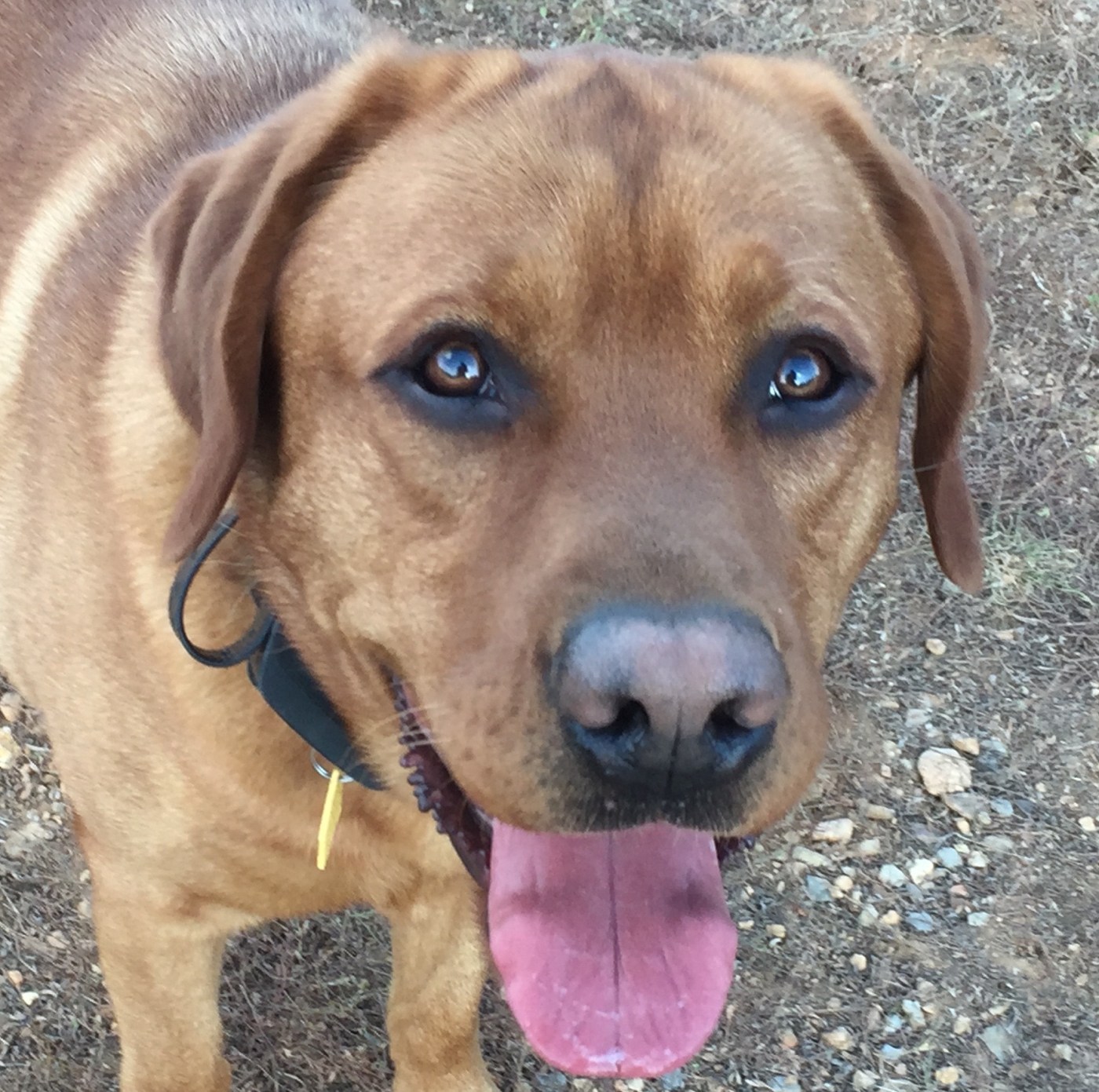 A TV dog trainer is fond of saying that you get the dog that is meant to teach you a life lesson. All I know is I love this particular dog very much. We have spent so much time together, he and I that I can’t imagine being without him. He is my hiking buddy, and we tromp endless miles in the woods without the encumbrance of the blasted leash. He wears a cowbell so that I can keep track of him crashing around, though he rarely goes very far from my side. I call him and he runs to me with his big smile, and I am awash in his happiness. He sits and looks at me, tongue lolling, waiting. I tell him to “go play” and he runs off. Our hikes always end the same way. I call him to me, saying “leash time!” I clip him to the lead, and we head back to civilization. That’s the time you can find me lurching through the campground with my big red dog. Observers will notice the dog is having the time of his life, grinning madly and filled with enthusiasm, while I probably look a little grim. I stop and make him come back to my side. He returns immediately and stares into my eyes with his big smile. I smile back. He is my boy, my red dog. “Ryder, walk,” I say, and he does so for about 20 yards, giving me just enough time for false hope until the next distraction. Some dogs are like that with their people. I love that he is like that with me.