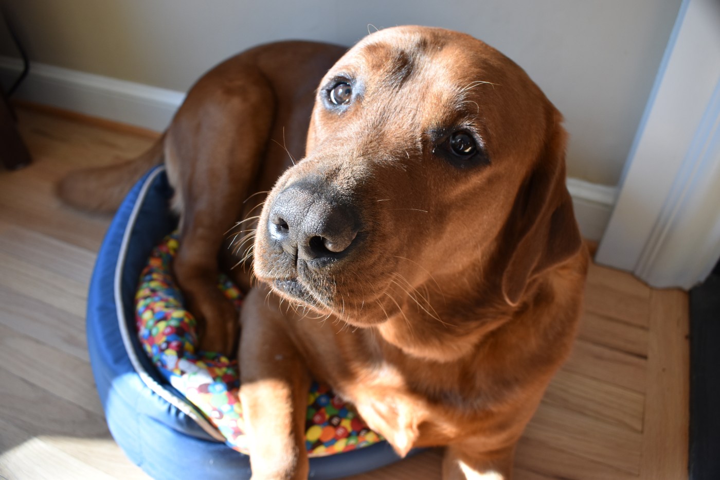 It happens all the time. Someone will ask “what’s your dog’s name?” I make sure to enunciate clearly. “Gumbo,” I say. I know in seconds if I have been misunderstood. Their eyebrows peak. “Oh, that’s an interesting name,” they say. I sigh. “GUM-BO. Like the stew, not Dumbo the elephant.” Gumbo is our second red dog. He has a very fancy pedigree name that includes “Cajun VooDoo.” Cajun is his father’s name, another very handsome Red Lab. We couldn’t call him Cajun and he’s just too goofy for a call name like VooDoo. He is definitely a Gumbo. He belonged to his breeder who is a good friend and as a puppy he would come to our house from time to time for a little socialization.