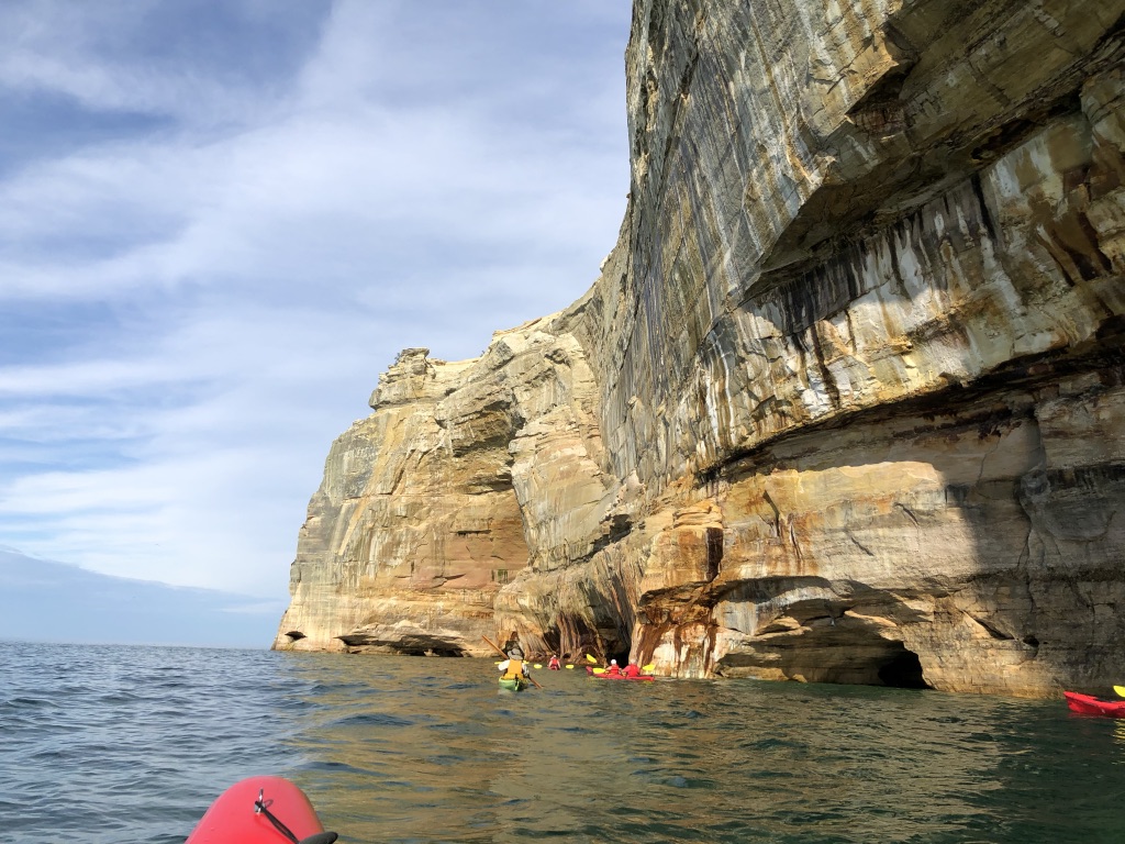 Pictured Rocks is situated along 42 spectacular miles of Lake Superior, 15 miles of which are the storied painted cliffs that give the park its name. The Park service website helpfully explains that 42 miles equates to 5 Manhattan Islands. There are also 100 miles of hiking trails in the park if water isn’t enough for your activity level. I have dreamed about paddling the cliffs for years and scrolled through an endless number of blogs describing idyllic views—and near disasters. I have learned through my personal near disasters to carefully scope out destinations and know your limits and the capacity of your equipment. Lake Superior is not to be toyed with in one’s dinky recreational kayak. Lack of proper equipment coupled with putting in at the wrong place will ensure you’ll be exhausted or in danger long before you reach any scenery. We agreed going with an outfitter made the most sense for us.