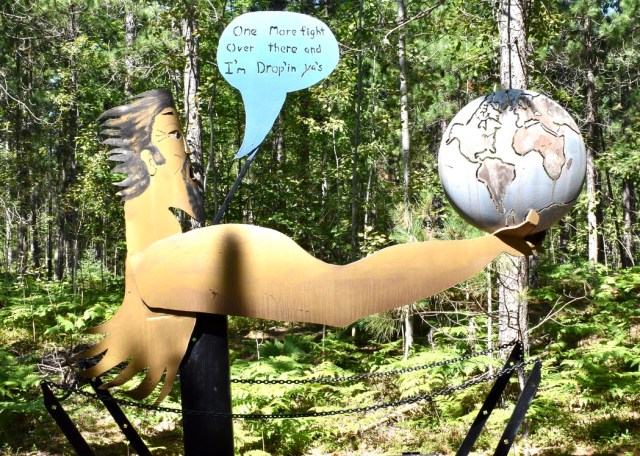 * [https://reddogonwheels.files.wordpress.com/2020/10/53cc5d05-7c17-48e6-8e5f-cf212707a1dd_1_105_c.jpeg?w=560] Welcome from an elk and a bear * [https://reddogonwheels.files.wordpress.com/2020/10/10dcaa35-5f50-45d5-8e94-e45fa3f8fcdd_1_102_a.jpeg?w=560] I love all things skeleton. This guy is huge. * [https://reddogonwheels.files.wordpress.com/2020/10/dsc_0657.jpeg?w=560] An eagle sits in its nest above the remnants of its catch. * [https://reddogonwheels.files.wordpress.com/2020/10/dsc_0658.jpeg?w=560] Peaceful thinker * [https://reddogonwheels.files.wordpress.com/2020/10/3bd0c888-70eb-4d50-bc68-5e8f188e80ea_1_105_c.jpeg?w=560] A biker dude * [https://reddogonwheels.files.wordpress.com/2020/10/5d125be2-066a-44b8-bd08-0b3c95a51d10_1_105_c.jpeg?w=560] … who dives through a ring of fire * [https://reddogonwheels.files.wordpress.com/2020/10/8330bc4e-6b6c-4521-a691-6b2ffd2b2d30_1_105_c.jpeg?w=560] Touching memorial to those who lost their lives to cancer. Details in the next two photos. * [https://reddogonwheels.files.wordpress.com/2020/10/dsc_0673.jpeg?w=560] Cancer does indeed suck. * [https://reddogonwheels.files.wordpress.com/2020/10/5a0e6719-b0c5-42be-ba1b-b2d2e1d99d45_1_105_c.jpeg?w=560] Part of the cancer memorial, this little family is perched on the altar. * [https://reddogonwheels.files.wordpress.com/2020/10/157b716f-3306-45fe-abee-a602d6d60c70_1_105_c.jpeg?w=560] Detail of critters in a big cage. * [https://reddogonwheels.files.wordpress.com/2020/10/fefddfa7-83e9-4ffb-882e-2f4ce3fd8d42_1_105_c.jpeg?w=560] Zoom in to the right corner: amongst a pile of pig doo is an “Average American Worker.” * [https://reddogonwheels.files.wordpress.com/2020/10/3cd341b6-0142-4f96-bc1c-6027e541e154_1_105_c.jpeg?w=560] If you want to make a sculpture for Lakenenland, it’s as easy as 1,2,3,4 * [https://reddogonwheels.files.wordpress.com/2020/10/e2e2f934-d1f8-43e1-9d06-91dc351264ae_1_105_c.jpeg?w=560] God? Atlas? Whoever he is, the caption reads “One more fight over there and I’m droppin’ ya’s” * [https://reddogonwheels.files.wordpress.com/2020/10/8486f837-71ae-42bf-b0c4-4108cd25eea8_1_102_a.jpeg?w=560] Sempre Fi! * [https://reddogonwheels.files.wordpress.com/2020/10/720304c5-f434-443b-ba78-219d1cf134ed_1_105_c.jpeg?w=560] This is my favorite, just because I like stars and the moon.