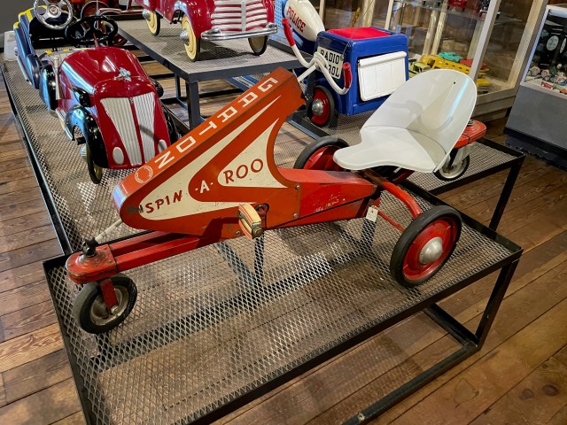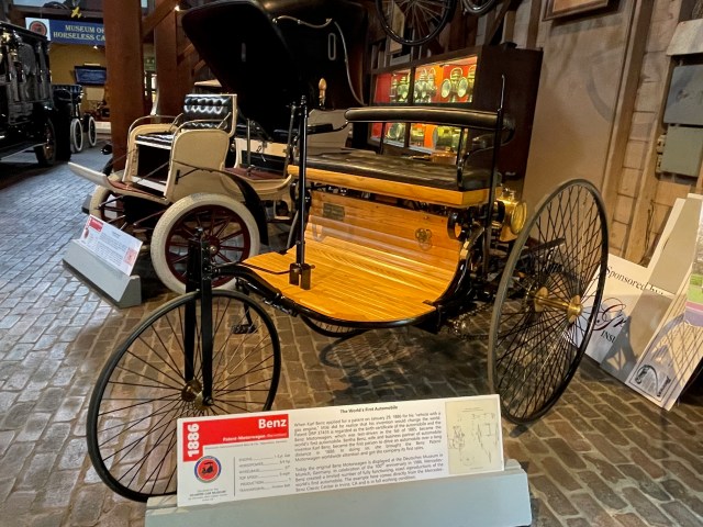 By now you’ve figured out that I am not really qualified to review cars in a meaningful way, since I am attracted more to oddities rather than form, function or whether they won races. This museum has cars you, your parents and great-grandparents once drove. It also has rare cars made by companies you’ve never heard of, built by collaborators from all over the world. Since the invention of the first true automobile in 1885, hundreds and hundreds of manufacturers have come and gone. Ben had a framed set of 150 miniature enamel car company badges (the emblems you see on car hoods and the like) which he sold a few years ago. The badges are collector items, memories of brief successes and many failures. Something I’m not used to, living in a time where car companies are saved from demise.