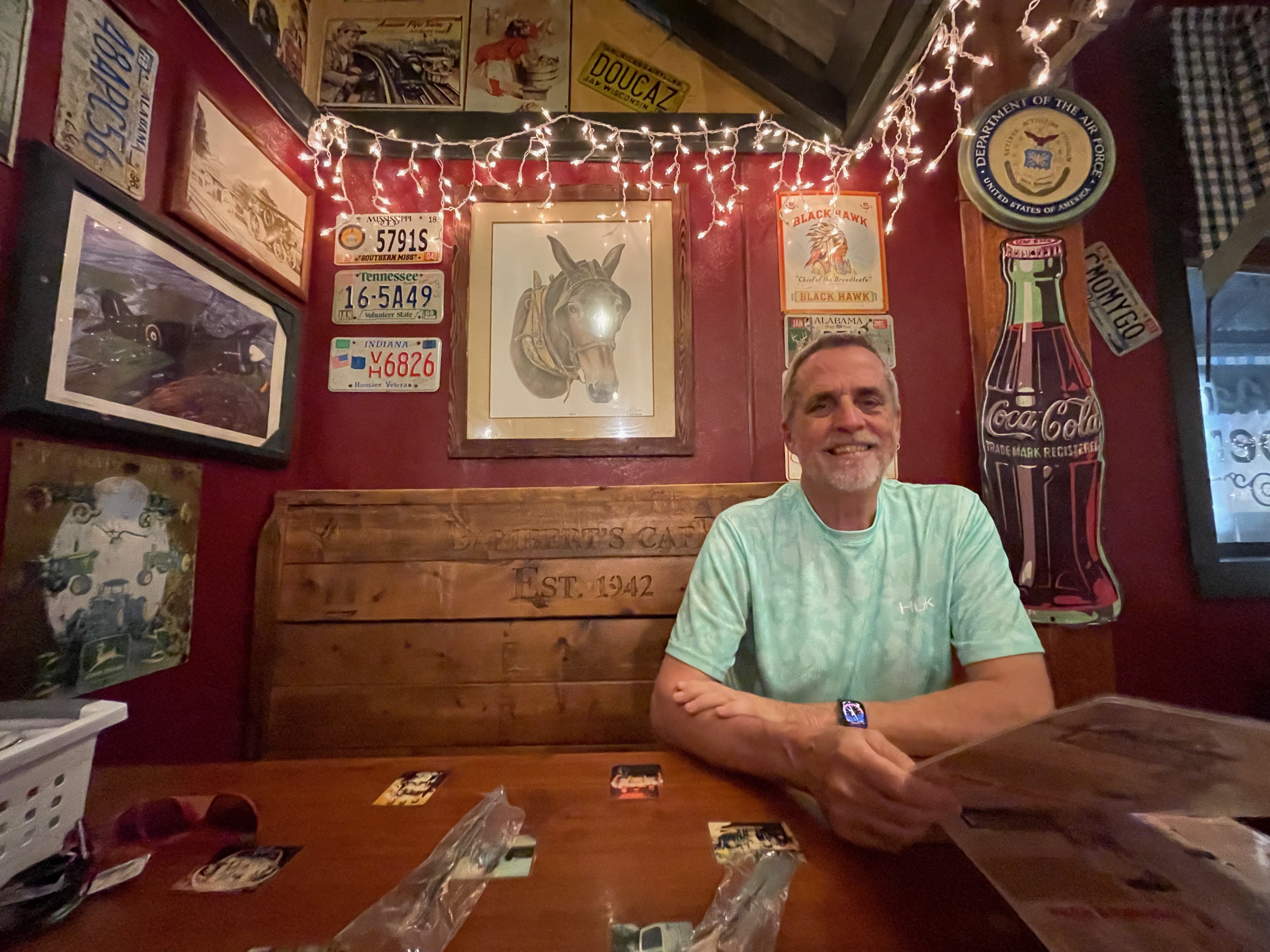 The exterior of Lambert’s Cafe is styled like a giant shed. The interior is cavernous, with a country cabin feel. Tribute walls to generations of Lamberts tell the family’s life story filled the lobby. Mementos of bygone days were hung all over the walls. Cracker Barrel totally stole their look.