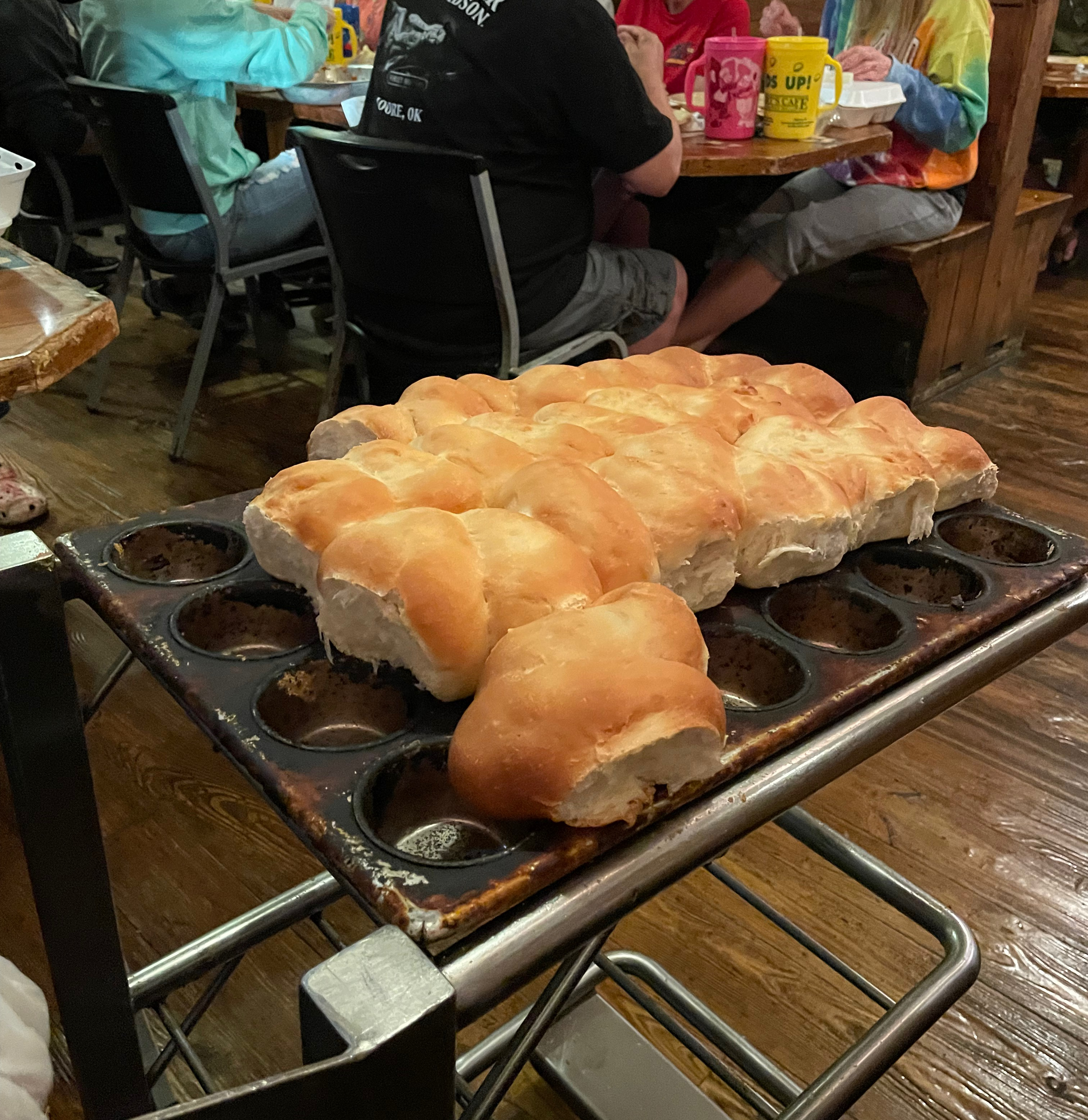 Earl may have been the founder, but it was his son Norman who is responsible for the “Throwed Roll” phenomenon. Legend has it that Norman, a high school football coach for Sikeston started the practice of throwing rolls at customers when it was too crowded to walk between the tables. He was quite a character, you can read more about Norm here.