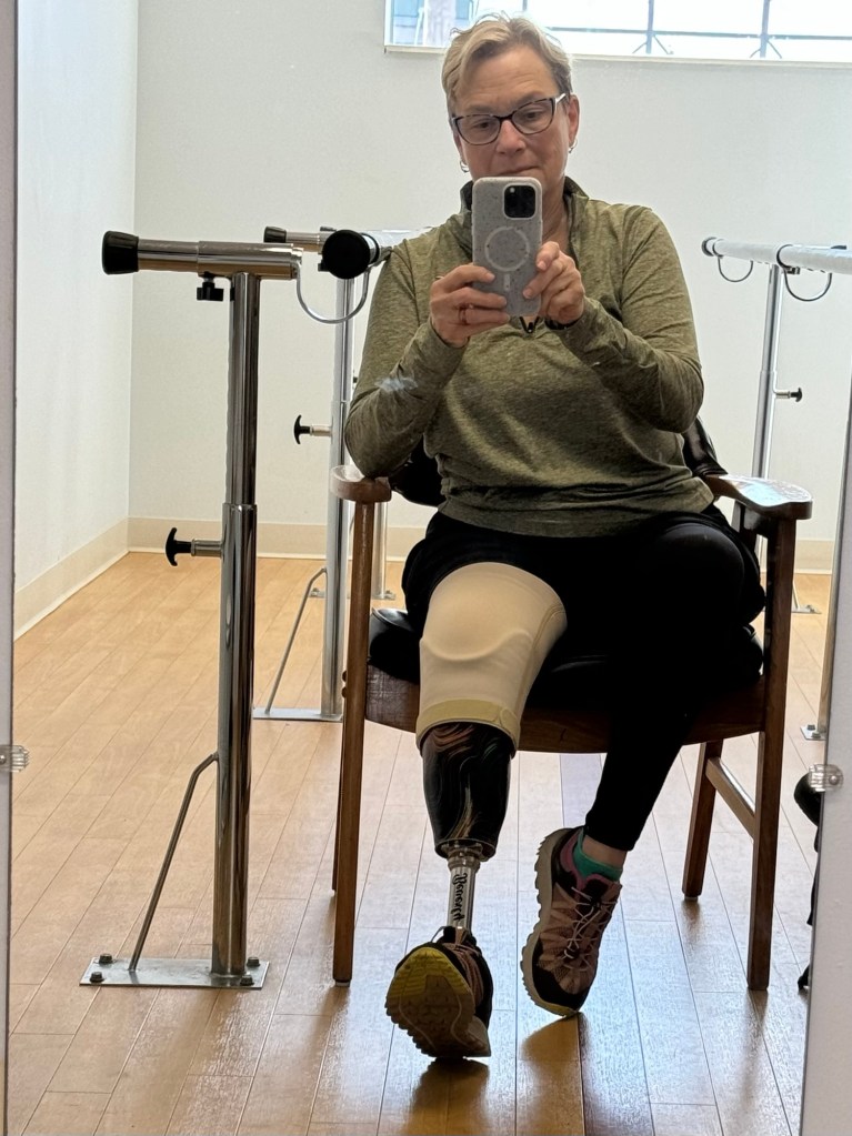 A prosthetic limb is a complicated thing, with its own vernacular. You don’t put a leg on and take it off; rather you “don” the leg or “doff” the leg. Using these arcane terms implies there’s noting simple about the process of leg on/leg off. Donning the leg is the most complicated process, involving a heavy silicone liner, multiples of special cotton socks to adjust the fit, and a silicone sleeve that holds the whole contraption in place. The leg, silicone, socks and all weighs around 7 lbs. Doffing is relatively easy. Peel everything off in reverse order and heave a big sigh the same way your granny did when she “doffed” her Sunday girdle. There are all kinds of lotions and potions you smear on your limb to keep it healthy under all that silicone, and more lotions, potions and special socks for your limb to wear after you put the leg away for the night, but only after you have washed all your silicone parts/pieces and put them to bed. It not unlike caring for an infant in that respect, and I am at the wrong end of life to easily adapt to a new and needy partner.
