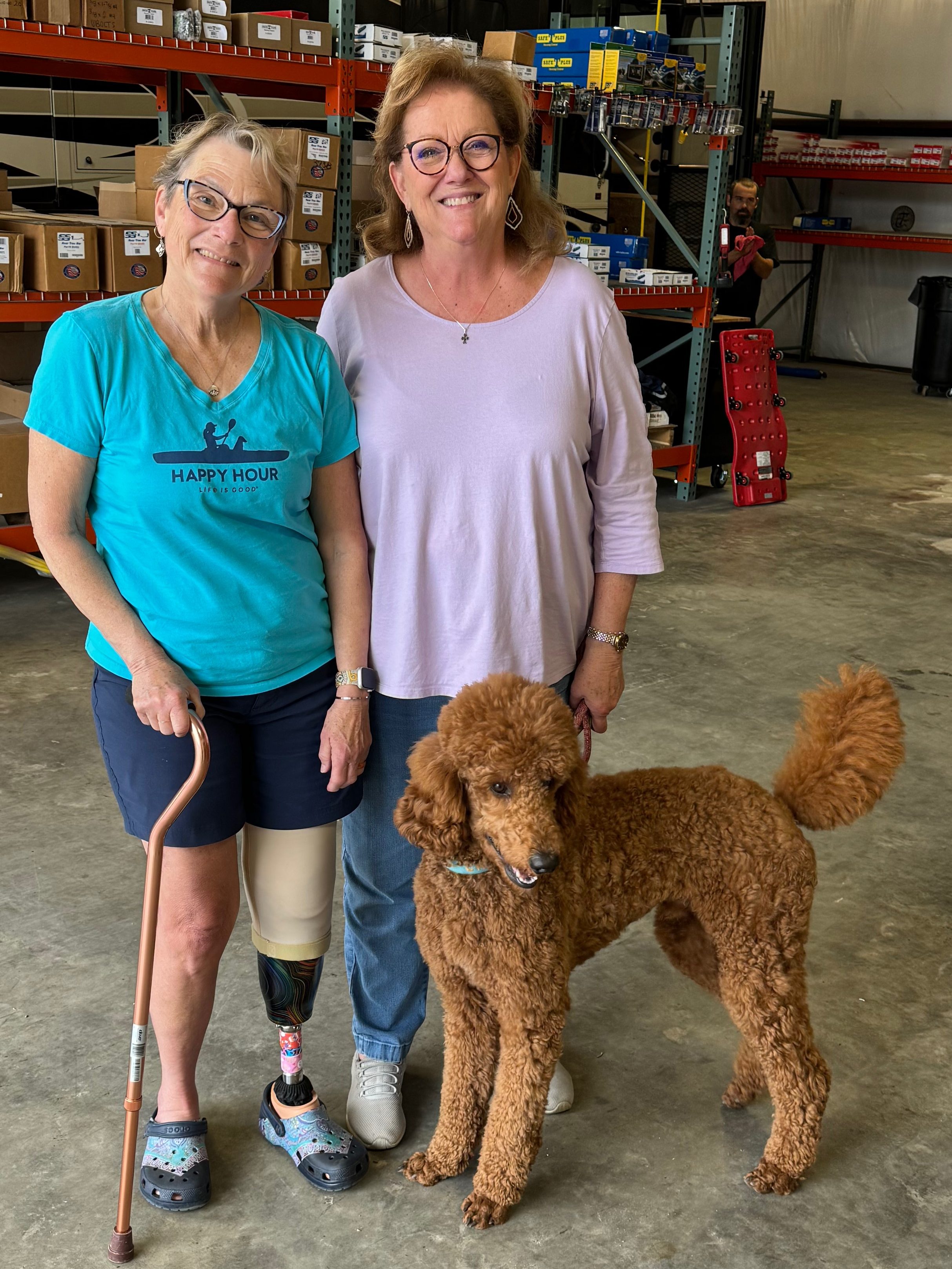 There was nothing left to do, so we got the poodle settled, took our seats and headed home. I took my turn behind the wheel to drive the rig–a big step forward for me. Not too bad for an old one-legged gal.