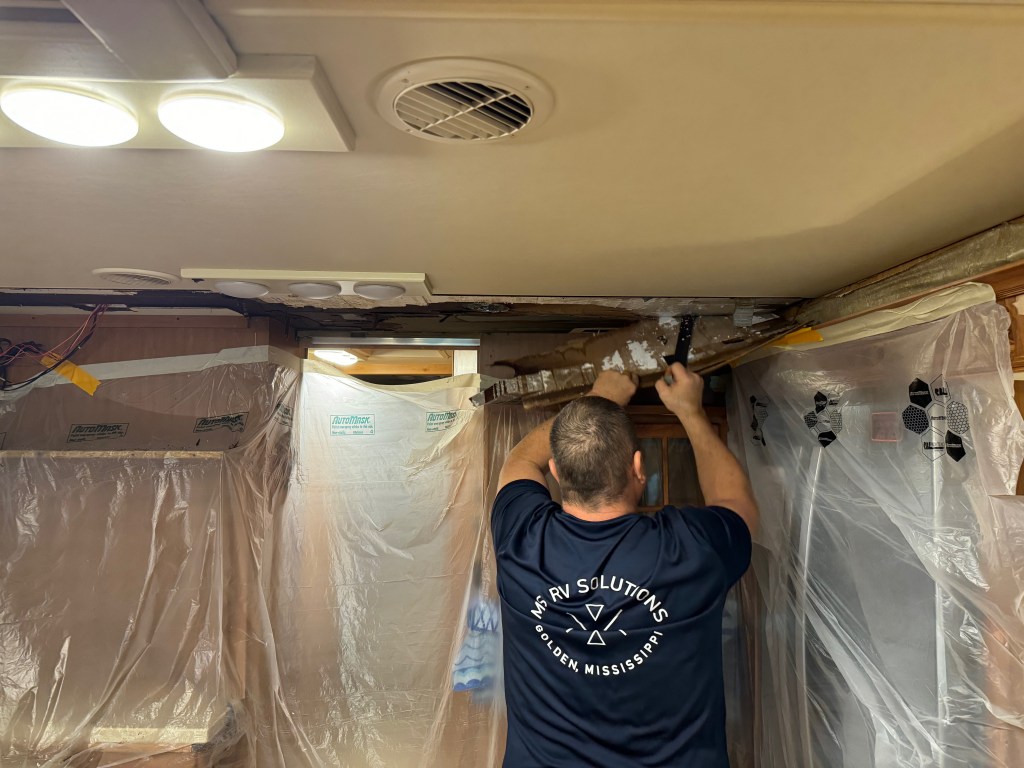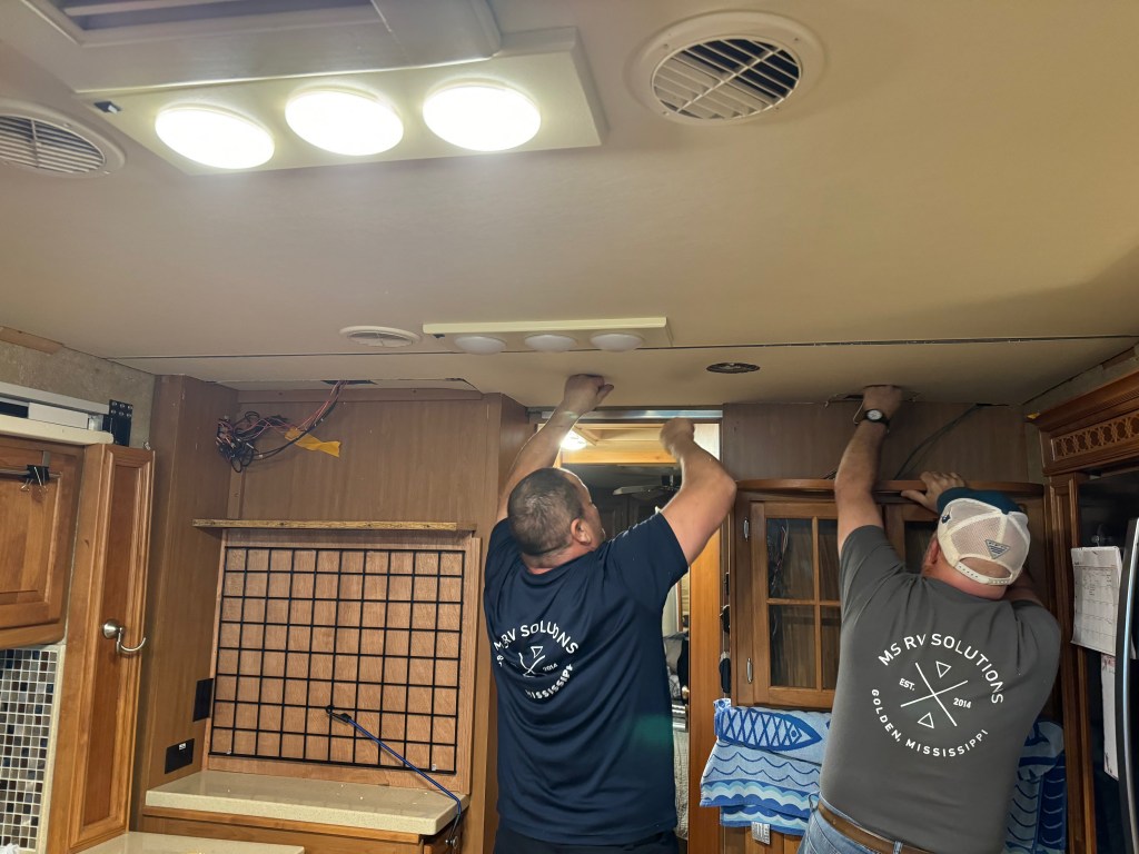 Here are Daniel and Carl, of MS RV. We spent a day with them while they repaired our ceiling and slide outs.