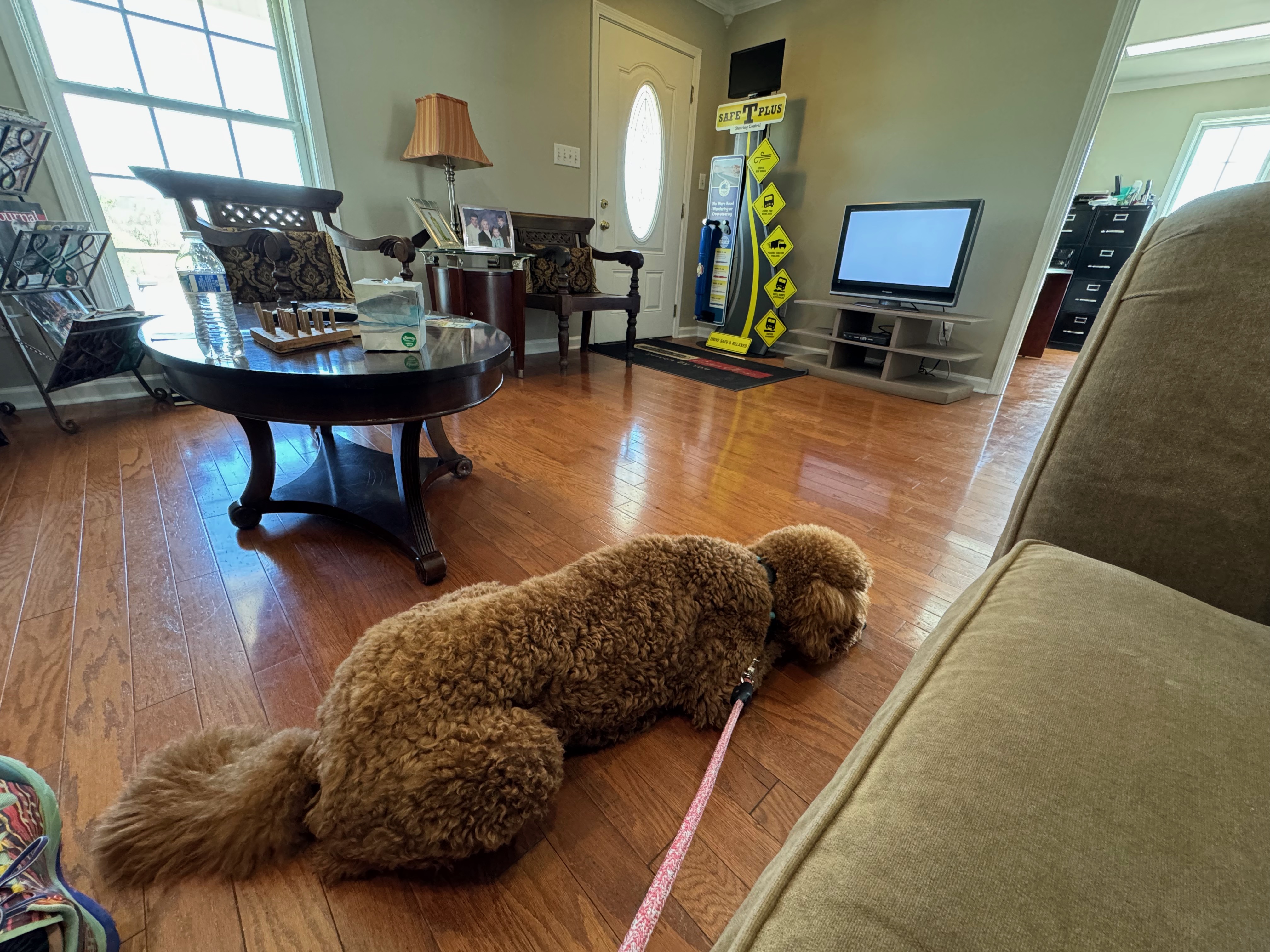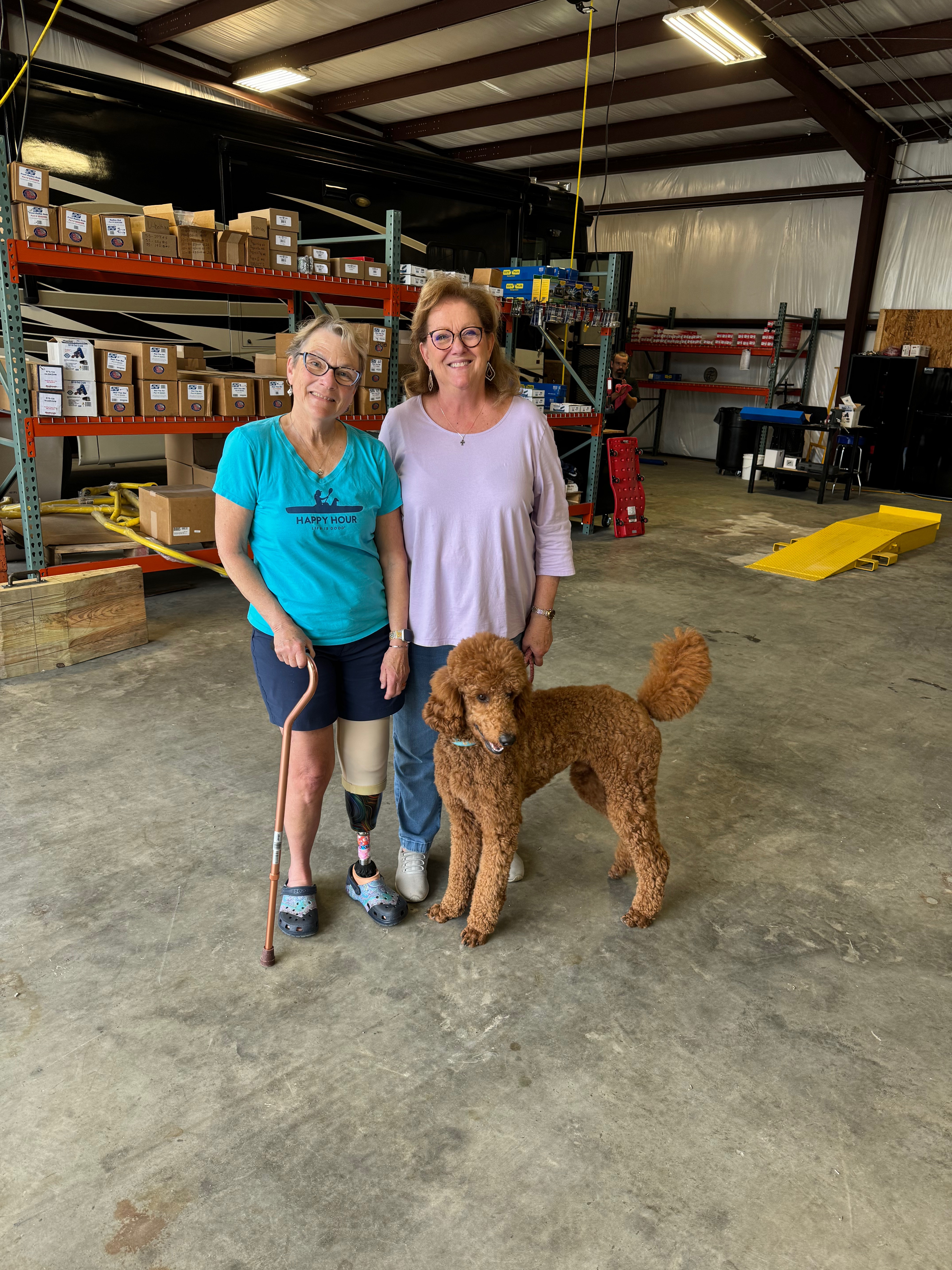 There was nothing left to do, so we got the poodle settled, took our seats and headed home. I took my turn behind the wheel to drive the rig–a big step forward for me. Not too bad for an old one-legged gal.