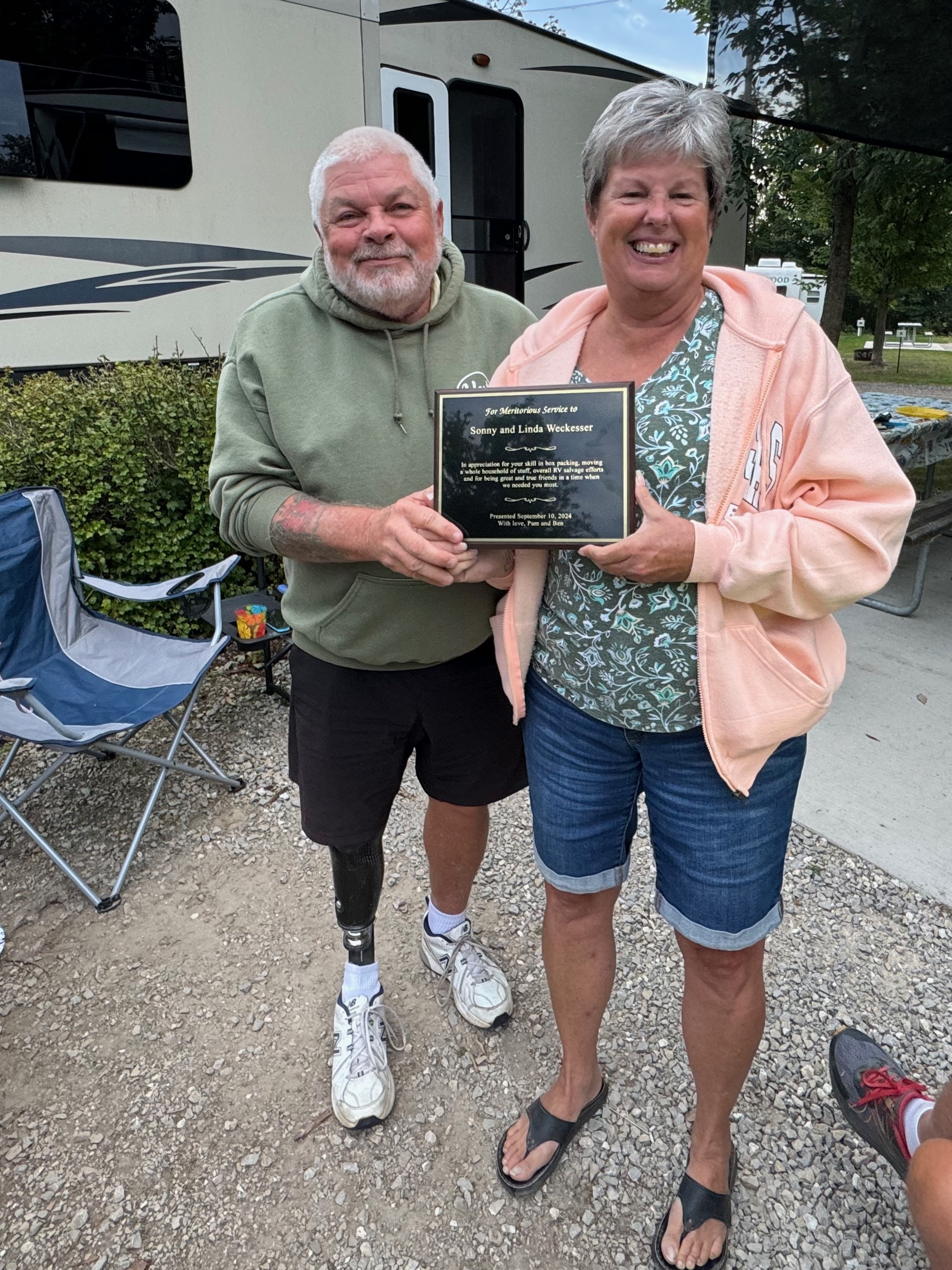 I’d always wanted to do something to thank Sonny and Linda for their help. We hadn’t known them for too long, but they swooped in and helped when we, and especially Ben, most needed it. We had to take some serious ribbing for the amount of stuff we had in the RV, but that’s how we all roll. I was at a loss for an idea. Then it came to me: I made them a plaque, which I presented to them at our first happy hour with a great flourish.