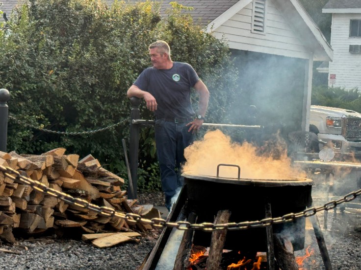 We camped with a group of friends we’ve met over years of travel. We have dogs and RVs in common. Our days settled into a routine pretty quickly; go to the dog park at 11 am, lunch at noon, out and about to one of the little communities nearby for sightseeing and a nightly campfire. Our friends Kathy and Chuck are Door County veterans and they planned a special outing for us that is a must-do in the peninsula; a fish boil.