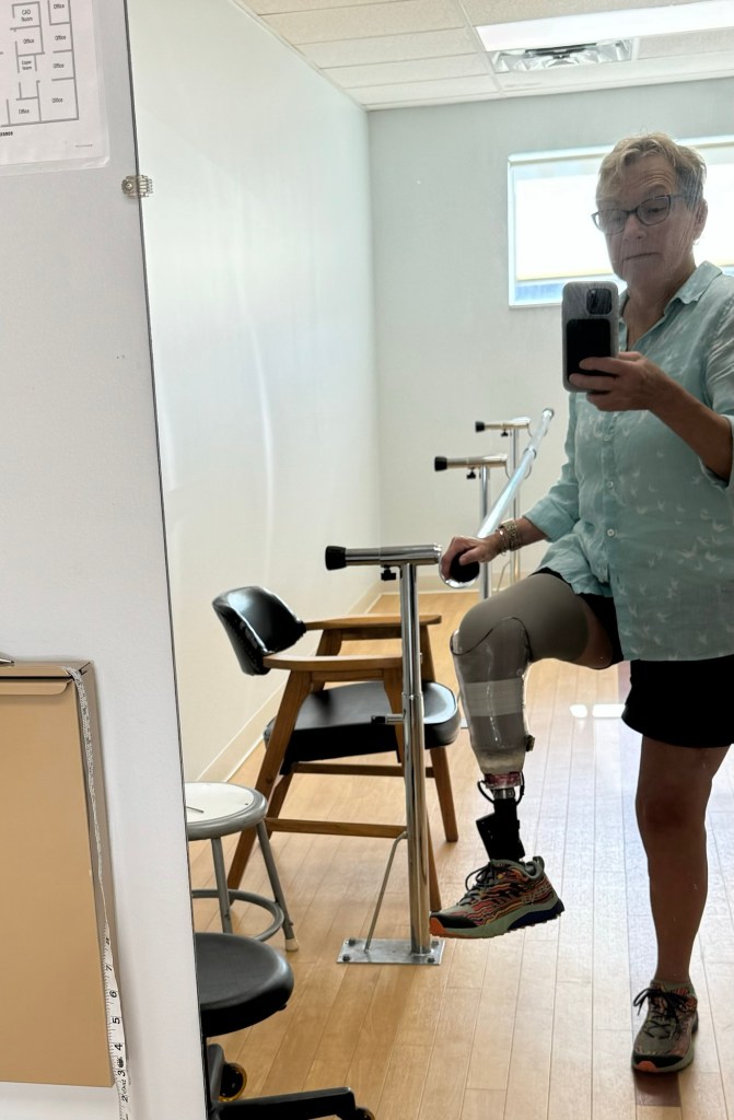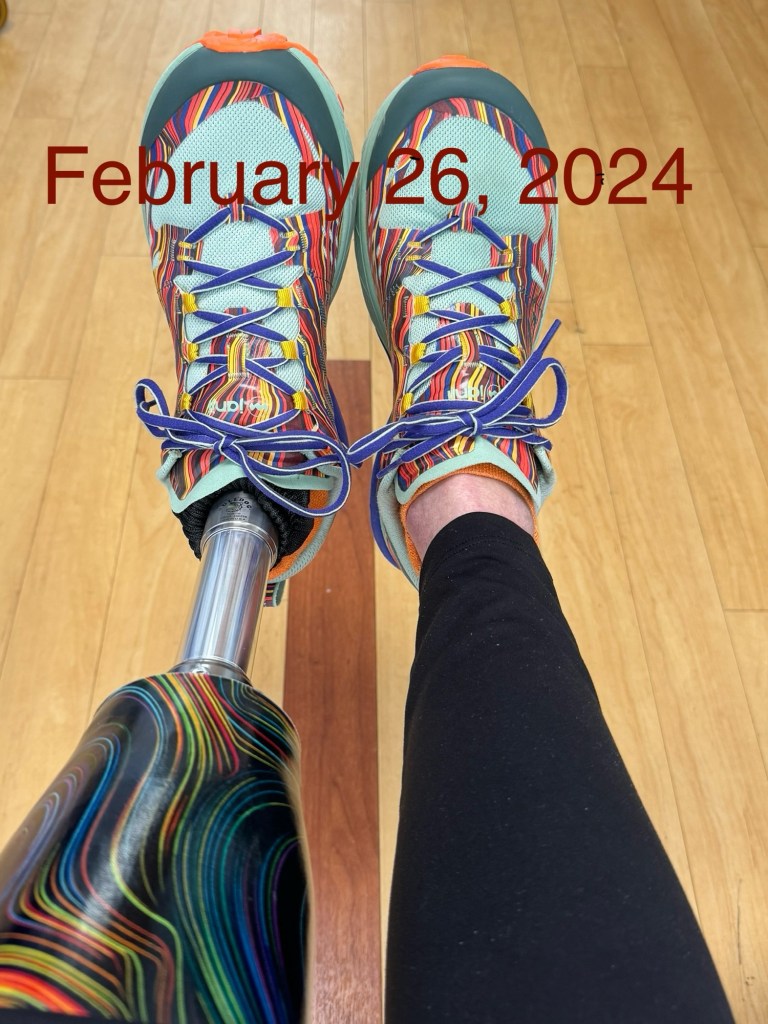 I got my first prosthetic leg on February 26, 2024–173 days after surviving the worst vehicle accident of my life. I am incredibly fortunate that my only injury was to my left leg. I opted to have it amputated rather than attempt to reconstruct my shattered limb, something the surgeon said would be difficult, long, no guarantee of success, and chronic pain. I have friends who are amputees and they seemed to be getting along fine with their prosthetics, so I figured I would just slap on my new leg and get back to my routine. As is typical of me, I underestimated the assignment. After the amputation I had a long difficult healing process, spending most of those 173 days in a wheelchair. When I was finally cleared to be fitted for a leg, I figured that at last my recovery would be complete.