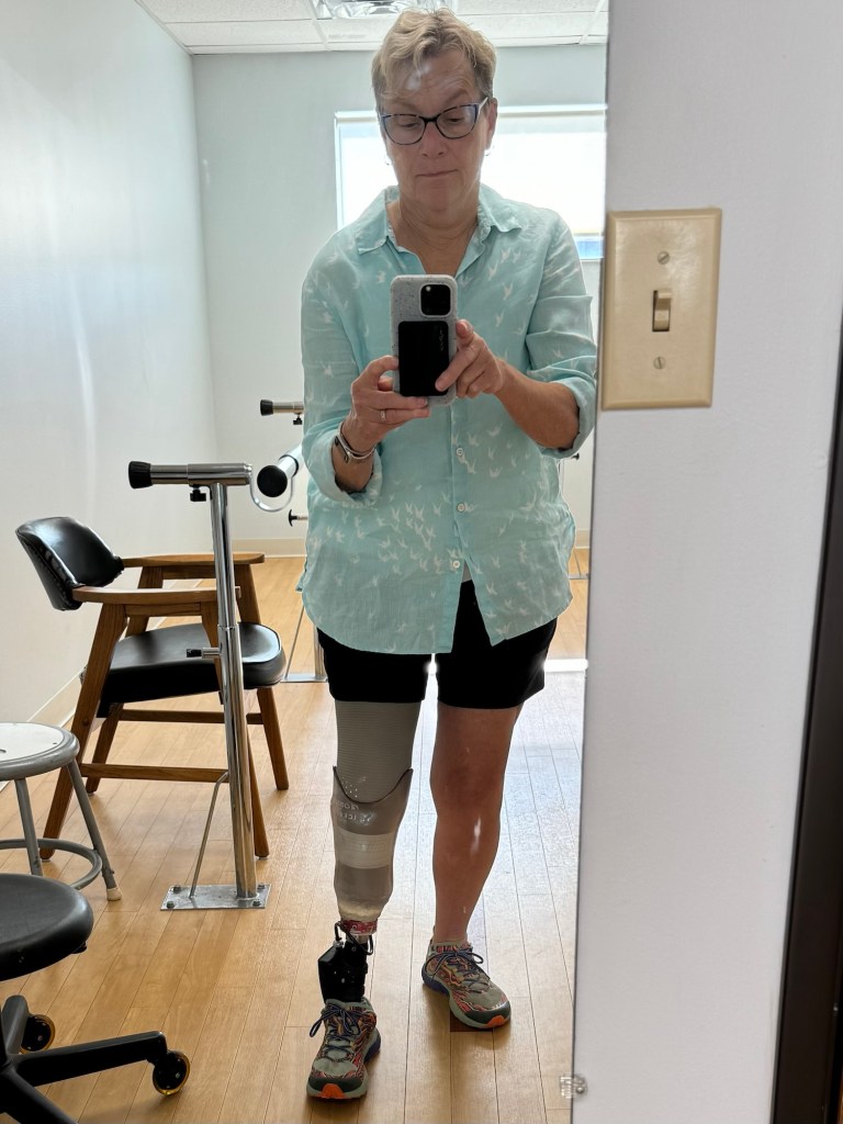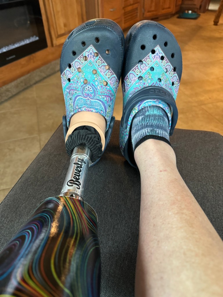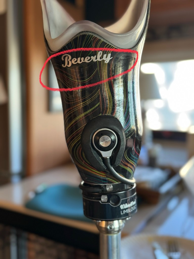 Beverly got an upgraded socket September 27, 2024, becoming Beverly 1.2. She won’t get a 2.0 designation until I get a new post and foot. She is more sleek than her earlier version, and much more comfortable to wear. We are both maturing into our relationship. On days when it seemed I stumbled on or tripped over everything, I’d thank Beverly for not dumping me on my ass in public. She’s the first thing I put on in the morning, and the last thing I take off at night. I remind myself that I am always an amputee and I need to be grateful for her presence in my life. Beverly and I are getting stronger every day. We’re in it for the long haul. Happy 1st anniversary, baby, you’re my ride or die.